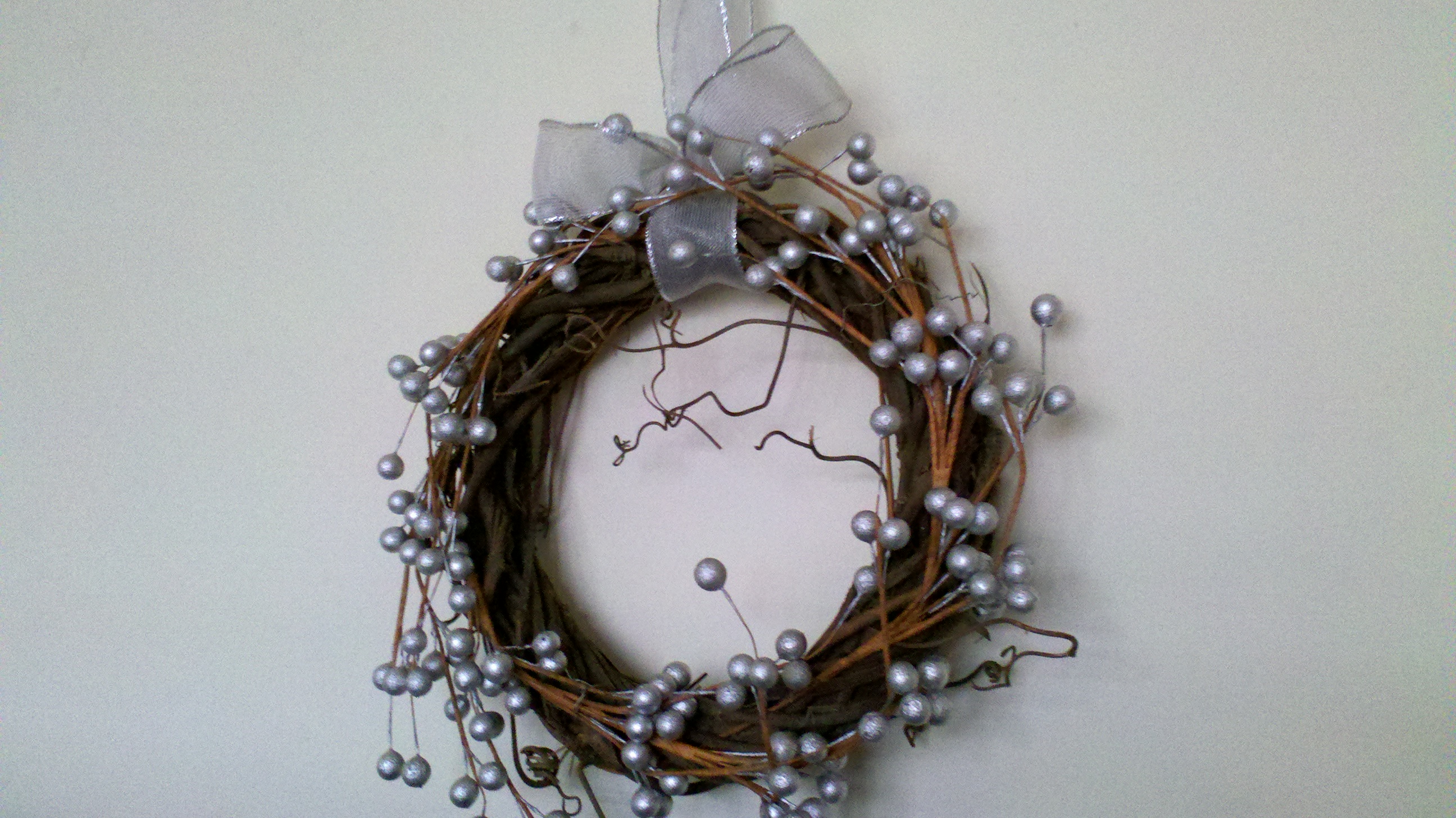 This wattle and silver wreath normally graces our front door, but it rained so much this Christmas, that we chose to put it on a wall instead!