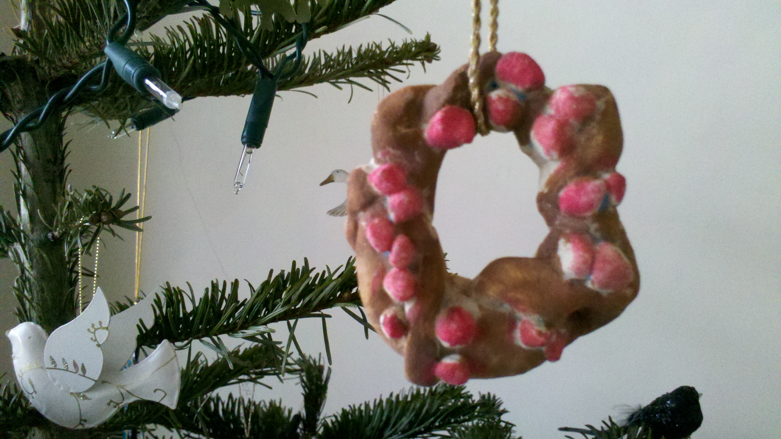 My daughter made this wreath in primary school from salt dough, and then painted it. It is one of my best treasures.