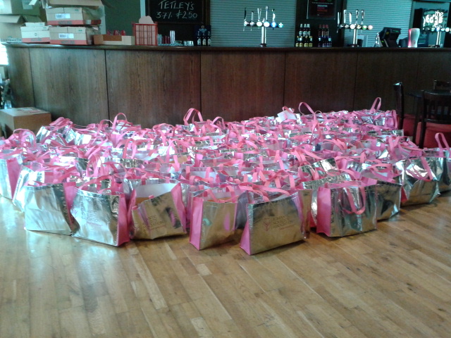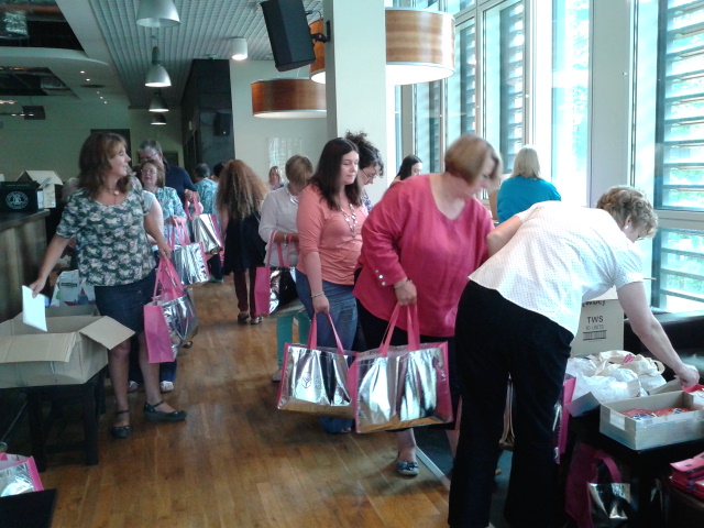 Goody bags being packed by volunteers